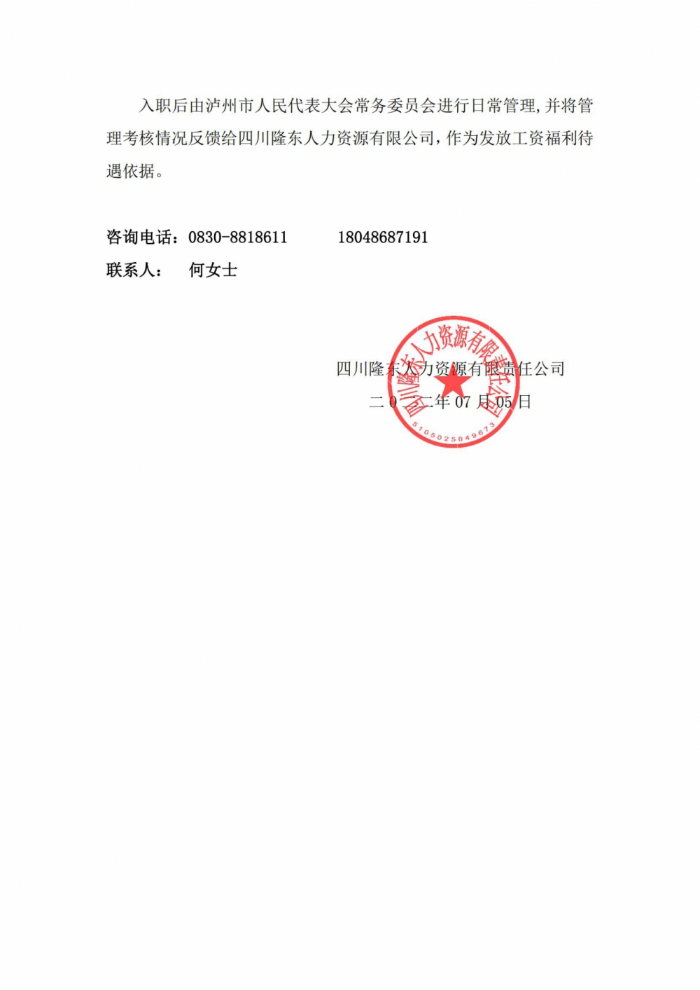 關(guān)于錄用派遣至瀘州白酒產(chǎn)業(yè)園區(qū)綜合服務(wù)器中心勞務(wù)工作人員的公...